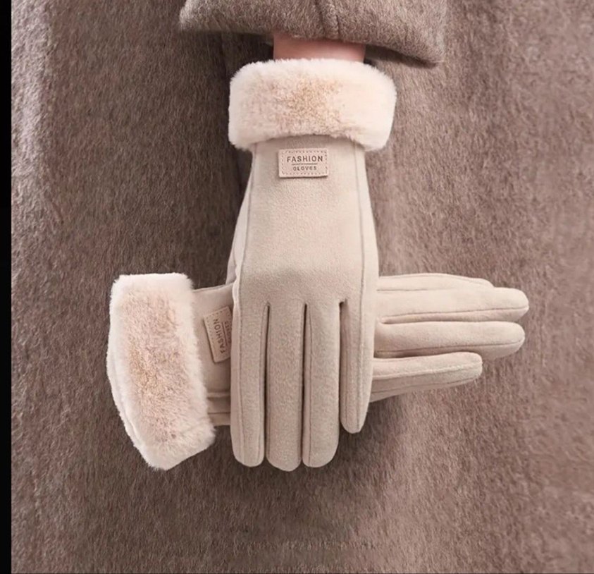Bej Peluşlu Kışlık Eldiven