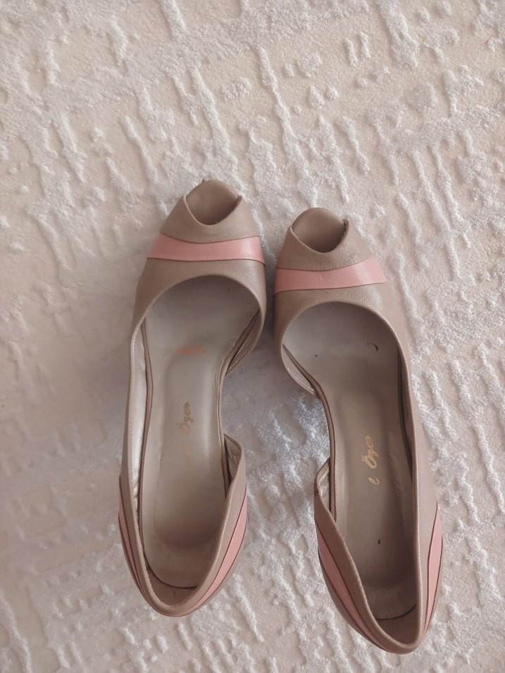 Bej ve pembe tonlarında kadın abiye ayakkabıları, stiletto topuklu ve modern klasik tarzda, düğünler için uygundur.