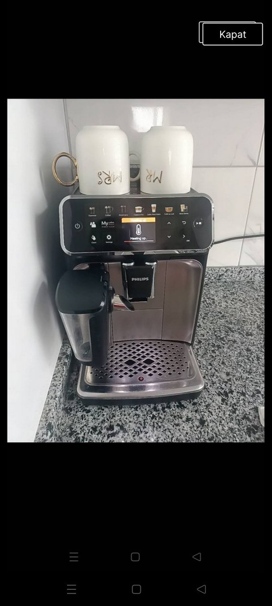Bej renkte Philips kahve makinesi, dokunmatik ekran ve süt köpürtücü ile çeşitli kahve seçenekleri sunar. Modern tasarıma sahip, kolay kullanım sağlar. ☕ kahve alışkanlığım olmadigi icin satiyorum sorunsuz calisiyor. ufak tefek cizikleri var belli belirsiz.gereksiz tekliflerde bulunmayin litfen.nakit fiyat degisi.almicaginiz urun icin bilgi istemeyin lütfen
