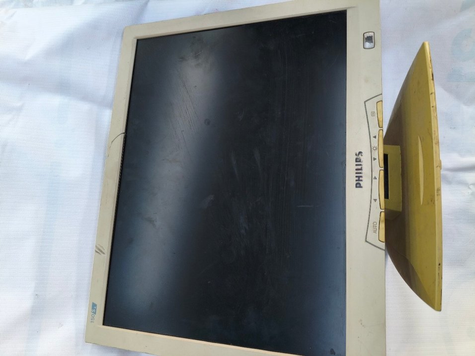 Bej renkli Philips monitör, klasik tasarımlı düz ekran. Temel bilgisayar görüntüleme ihtiyaçları için uygundur. ️kasanın üstünde kırık var çalışır durumda görüntüye mani değil