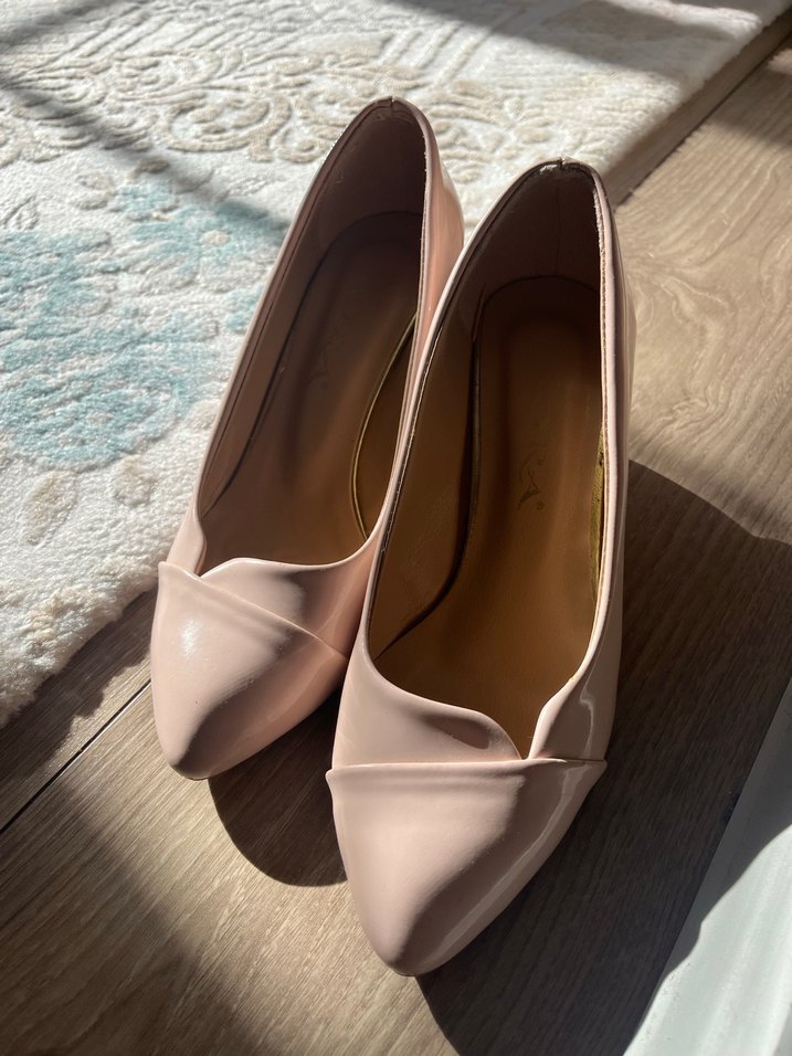 Bej renkte, lastik malzemeden yapılmış, pile detaylı kadın blok topuklu ayakkabılar. Günlük kullanıma uygun klasik ve sade tarzda. Göründüğü gibidir rahat ve çok şık ayakkabı
