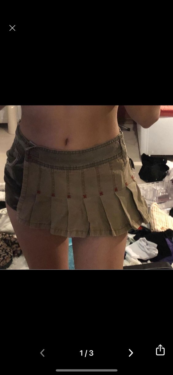 bej, pileli ve fitted kesime sahip sortu asker kamuflajli kot mini etek. Grunge,bohem, vintage tarzını yansıtır, dış mekan kullanımı için uygundur. xxs-xs beden icindir olcu isteyebilirsiniz onu cirtcirtli sortu fermuarli detayli fotograf isteyebilirsiniz