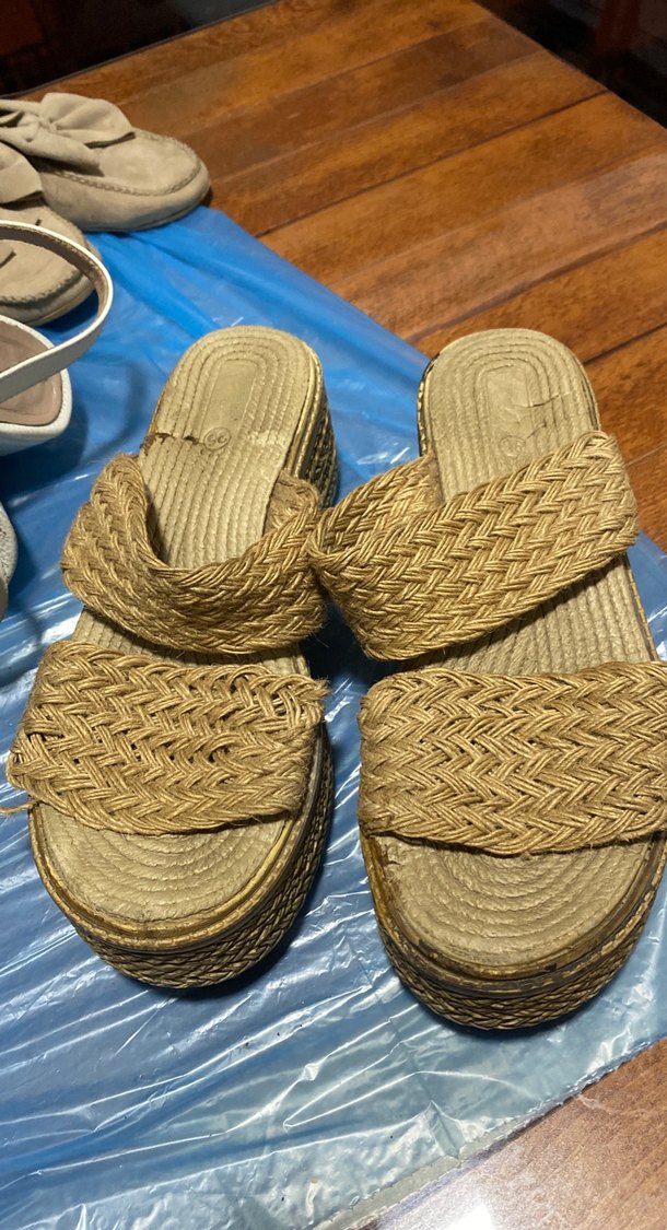 Bej renkli, kauçuk malzemeden yapılmış pileli dolgu topuklu kadın sandalet. Bohem tarzıyla günlük kullanıma uygundur. ✨