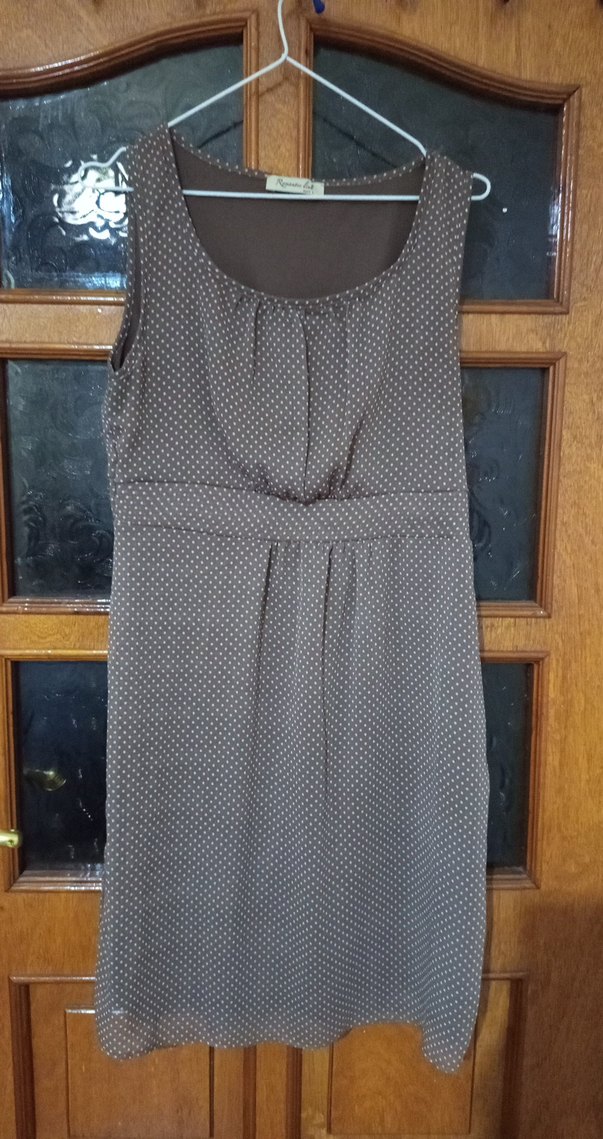 Yumuşak tül kumaştan yapılmış, yuvarlak yakalı, pile detaylı, kolsuz bej midi elbise. beli kuşaklı görünüyor ön ğöğüs kısmı dökümlü