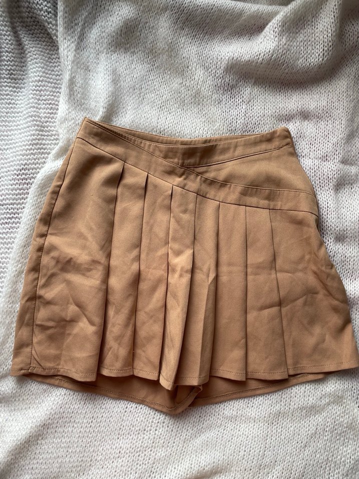 Bej Pileli Midi Kadın Etek
