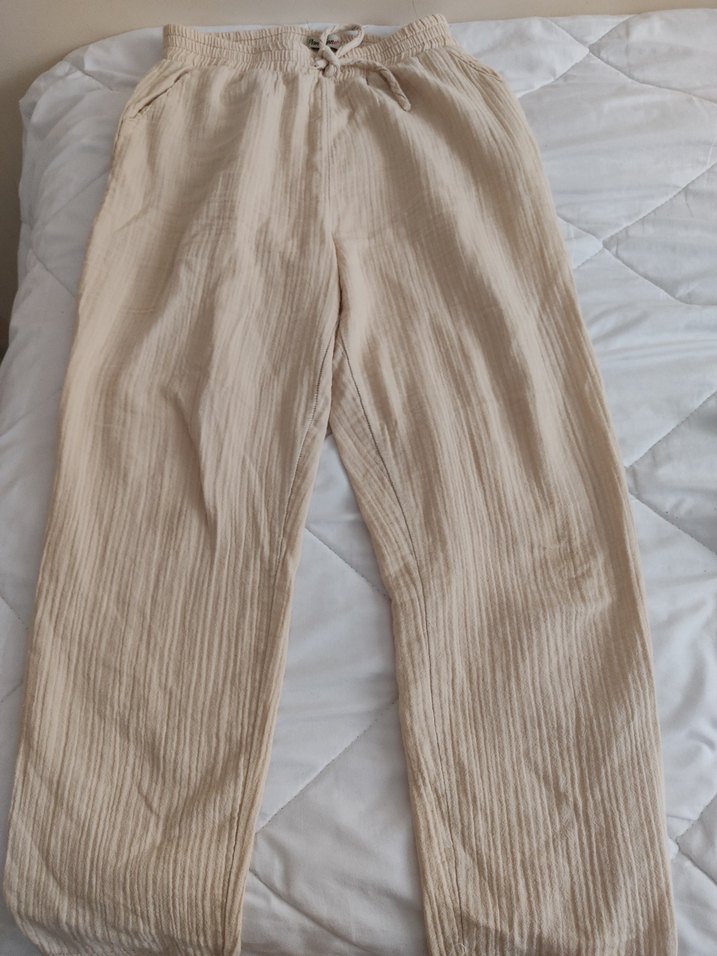 Bej Pilili Kadın Keten Pantolon