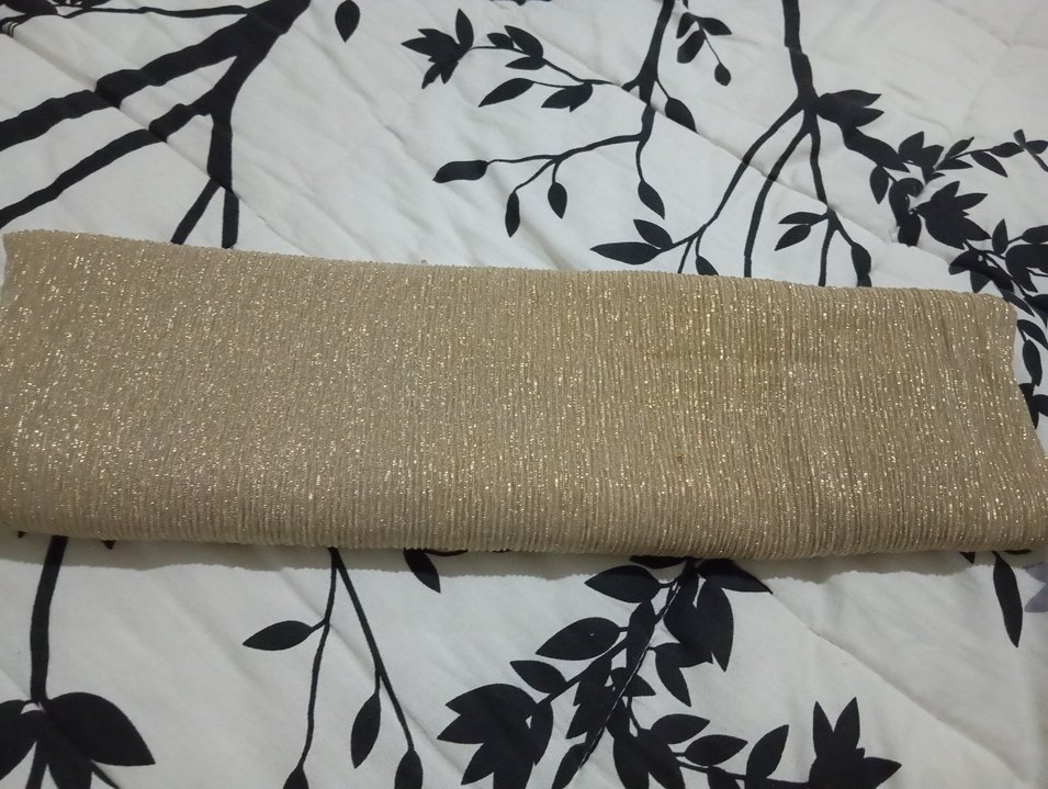 Bej renkte, pilili ve parlak görünümlü kadın şalı. Yumuşak sentetik kumaştan yapılmış, sade ve modern tarz için uygundur