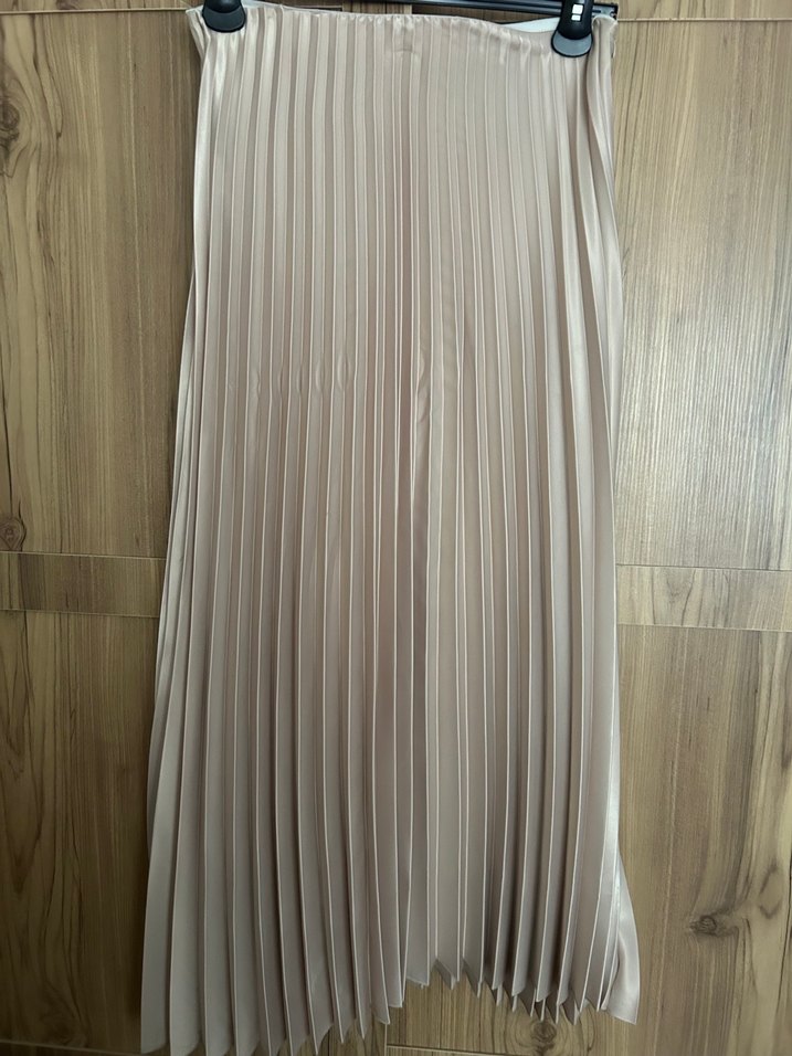 Bej renkte, pilili detaylı ve regular fit kesime sahip uzun etek. Düz desensiz, sentetik kumaştan üretilmiş ve ofis kullanımı için uygundur.