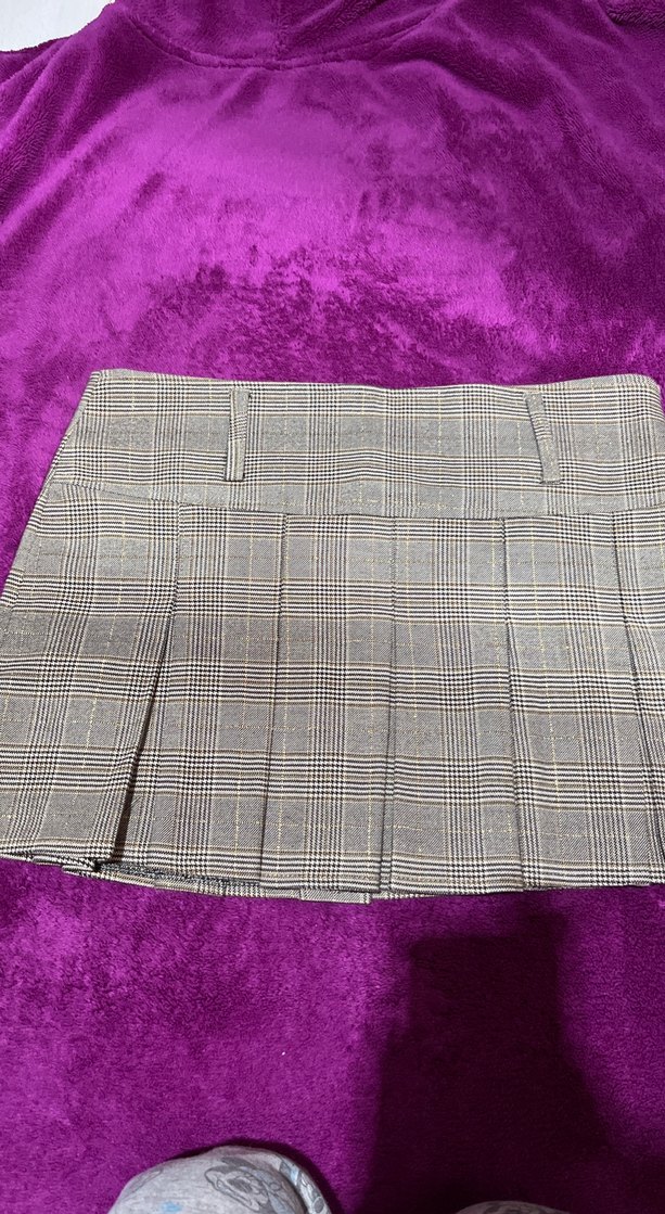 Bej renkli, pilili ve kare desenli etek ilana koyduktan sonra fark etttim yan kısmı leke olmuş fiyatını güncelledim lütfen ona göre alım yapınız