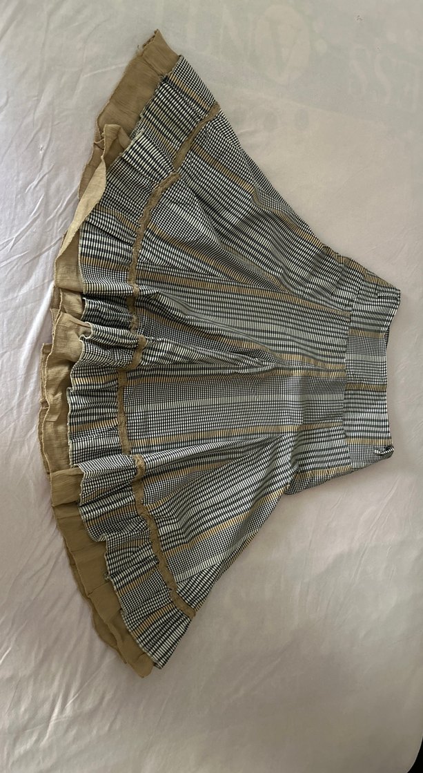 Bej renkte, pilili ve bol kesim hamile eteği. Midi boyu ve desen içermeyen yapısıyla bohem ve Paris tarzını yansıtır. Günlük kullanım için uygundur.