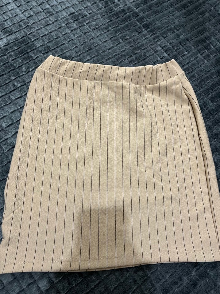 Bej renkli, pilili ve vücuda oturan kesime sahip midi etek. Sentetik kumaştan üretilmiş, düz ve desen içermeyen tasarım, ofis kullanımı için uygun.