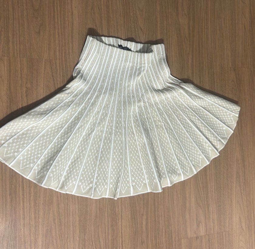 Yumuşak triko kumaştan, pilili ve bej renkte midi uzunlukta etek. Bol kesim ve desensiz, bohem tarzda dış mekan kullanımı için uygun.