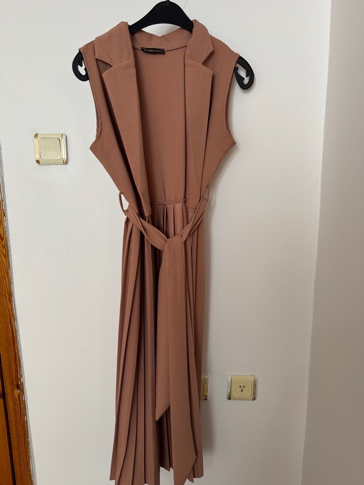 Bej Pilili Uzun Kadın Elbise/ yelek