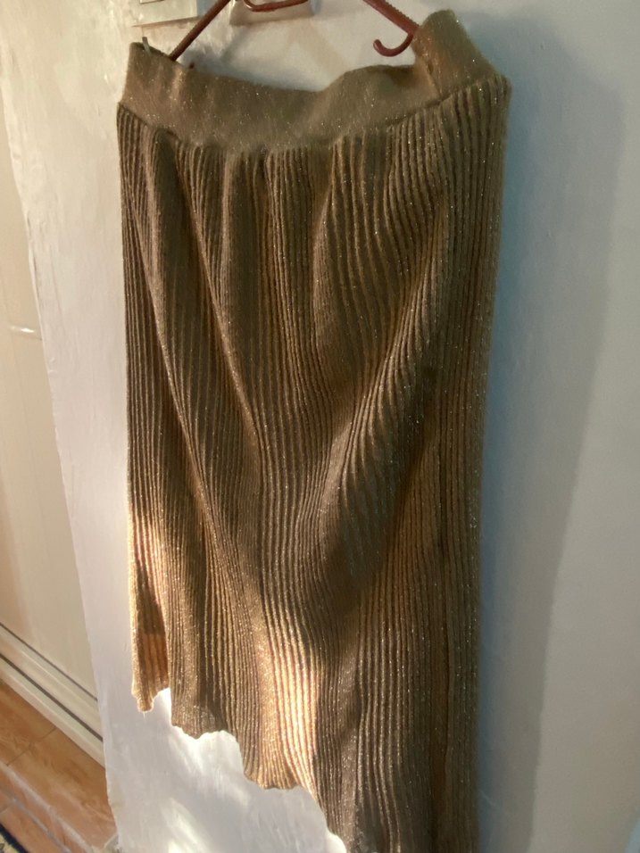 Bej renkte, parlak görünümlü pilili uzun keten etek. Yumuşak kumaştan, bol kesimli ve bohem tarzda, günlük kullanıma uygun. ✨S M uyumludur