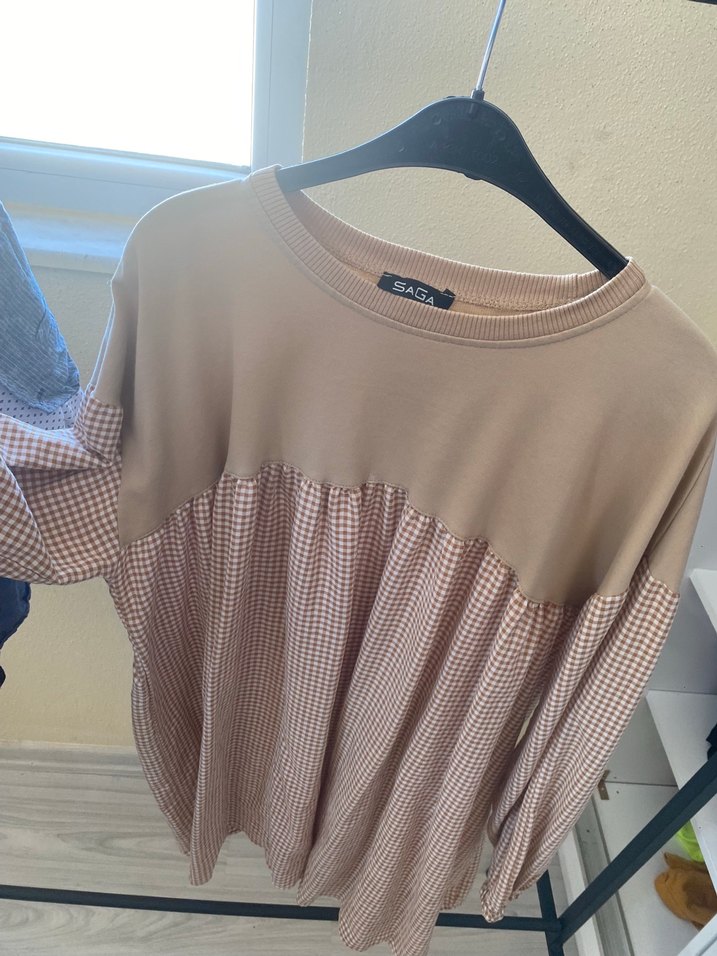 Bej Pilili Uzun Kollu Kadın Bluz