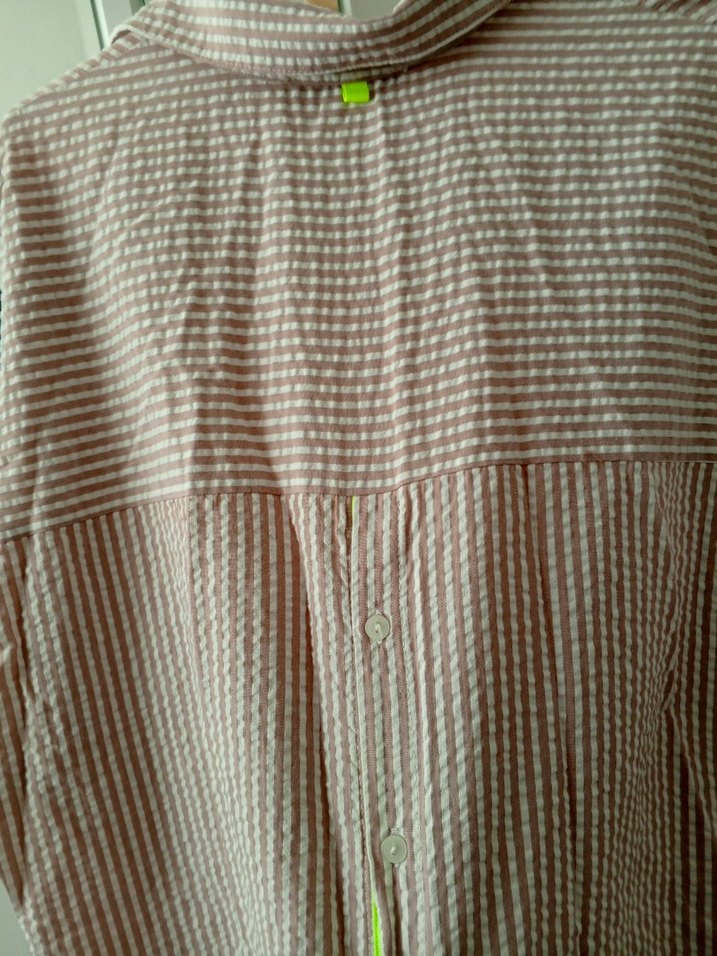 Bej keten kumaştan, pilili, yakalı ve uzun kollu gömlek. Salaş kesimi ve midi boyu ile minimalist ve bohem tarzı sunar.