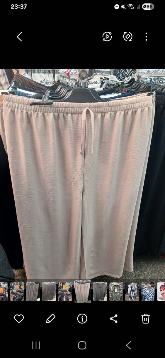 Bej renkli, piliseli detaylara sahip, midi boy, bol kesim kadın kumaş pantolon. Yumuşak ve parlak kumaştan, günlük şık rahat stil için uygun. ✨