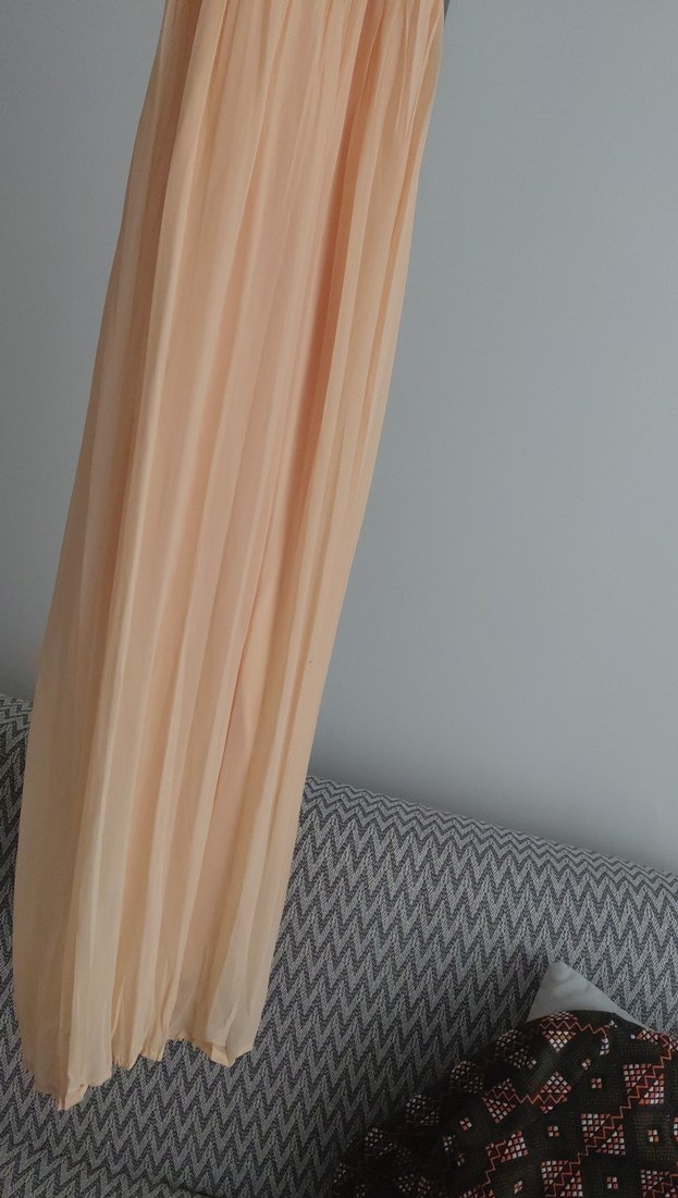 Bej renkli, piliseli detaylara sahip uzun ve dar kesim kadın eteği. Sentetik kumaştan yapılmış, minimalist ve çağdaş tarza uygun, düğünlerde tercih edilebilir.