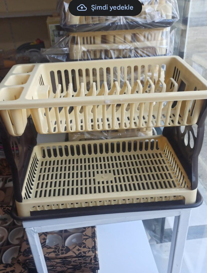 Bej renkli plastik bulaşık kurutmalık, tabak ve çatal-kaşıklar için bölmeli kullanışlı bir üründür. ️