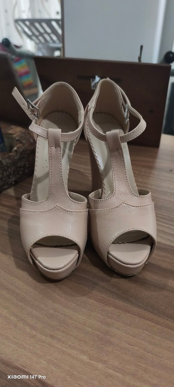 Bej platform stiletto topuklu, tokalı ve yumuşak kauçuk malzemeden yapılmış. Minimalist ve klasik şıklık sunar, günlük kullanıma uygundur.