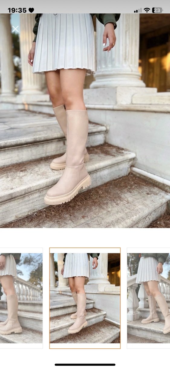 Bej Platform Topuklu Dizaltı Kadın Çizme