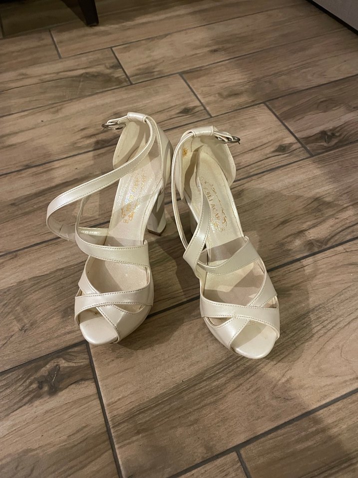 Bej renkte, satenimsi dokulu ve bağcıklı detaylara sahip platform topuklu abiye ayakkabılar. Düğün ve vintage tarzlar için uygundur. 36 numaradır.