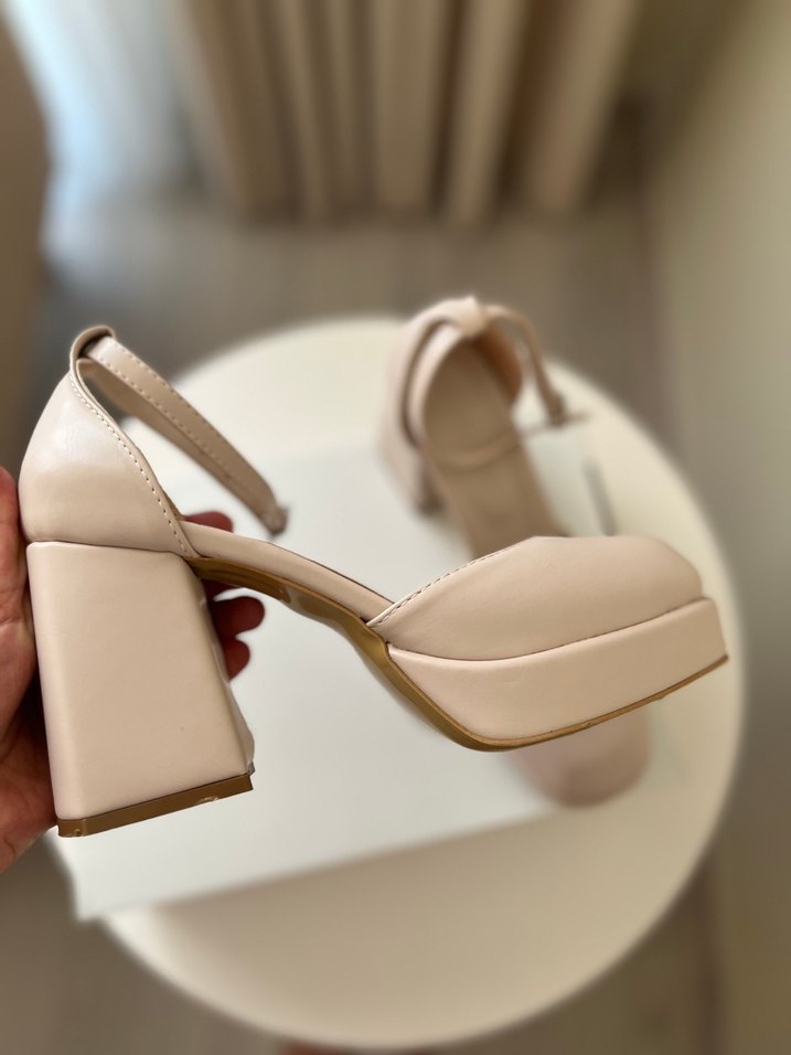 Bej renkte, tokalı ve yumuşak kauçuk malzemeden yapılmış platform topuklu kadın ayakkabısı. Ofis kullanımı için çağdaş ve klasik şıklık sunar.1 defa giyildi.