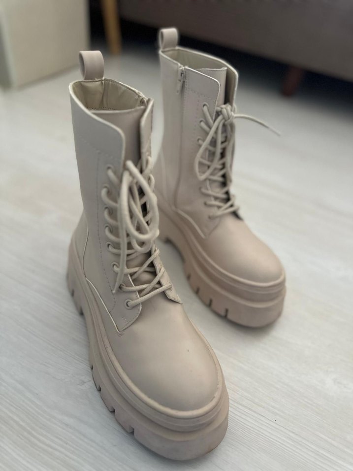 Bej renkte, platform topuklu lastik kadın botları, günlük kullanım için rahat ve şık bir sokak tarzı sunar.