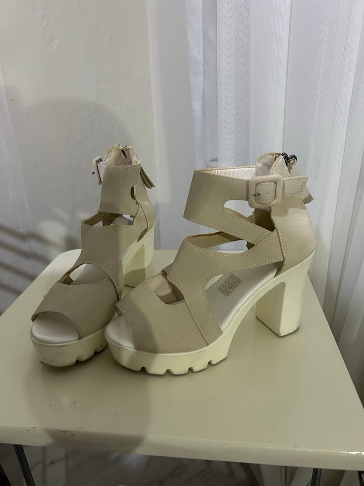 Bej Platform Topuklu Kadın Sandalet