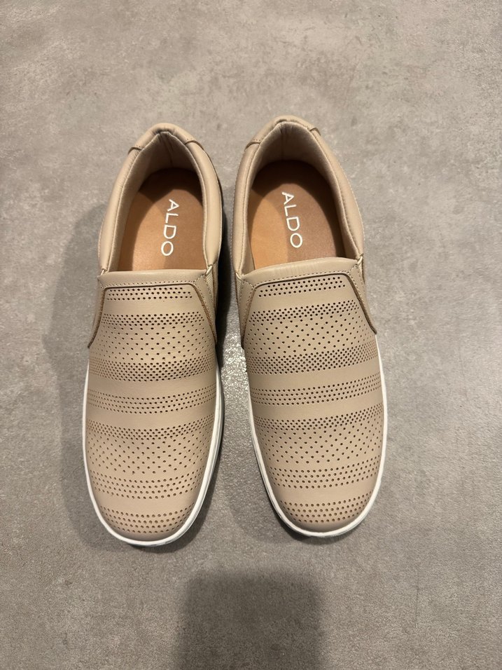 Bej renkte ALDO marka, cırt cırtlı ve delikli tasarımlı kadın platform spor ayakkabı. Rahat kauçuk taban, günlük şehir stiline uygun. Mağazada denenmeye bağlı olarak altı kirli durabilir. SIFIRDIR.