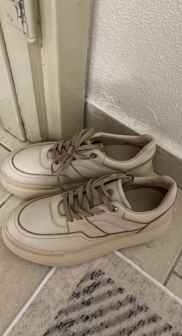 Bej renkli, platform topuklu kadın spor ayakkabısı. Minimalist ve sokak stili ile günlük kullanıma uygun, rahat ve şık. Topuk boyu 3 cm