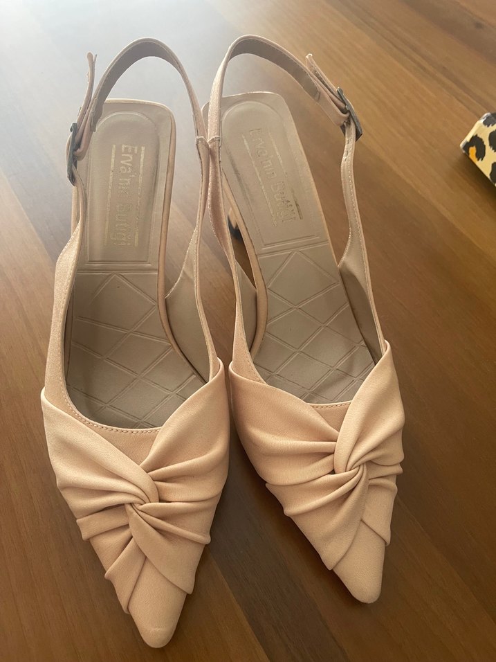 Ayakkabı temiz kusuru yok sadece topuk kısmın da ufak tefek çizgi var fotoğrafını da çektim bakabilirsiniz Bej renk, pliseli tasarımlı blok topuklu kadın abiye ayakkabıdır. Rahat kauçuk malzemeden üretilmiş, düğünler için çağdaş Paris tarzını yansıtır.