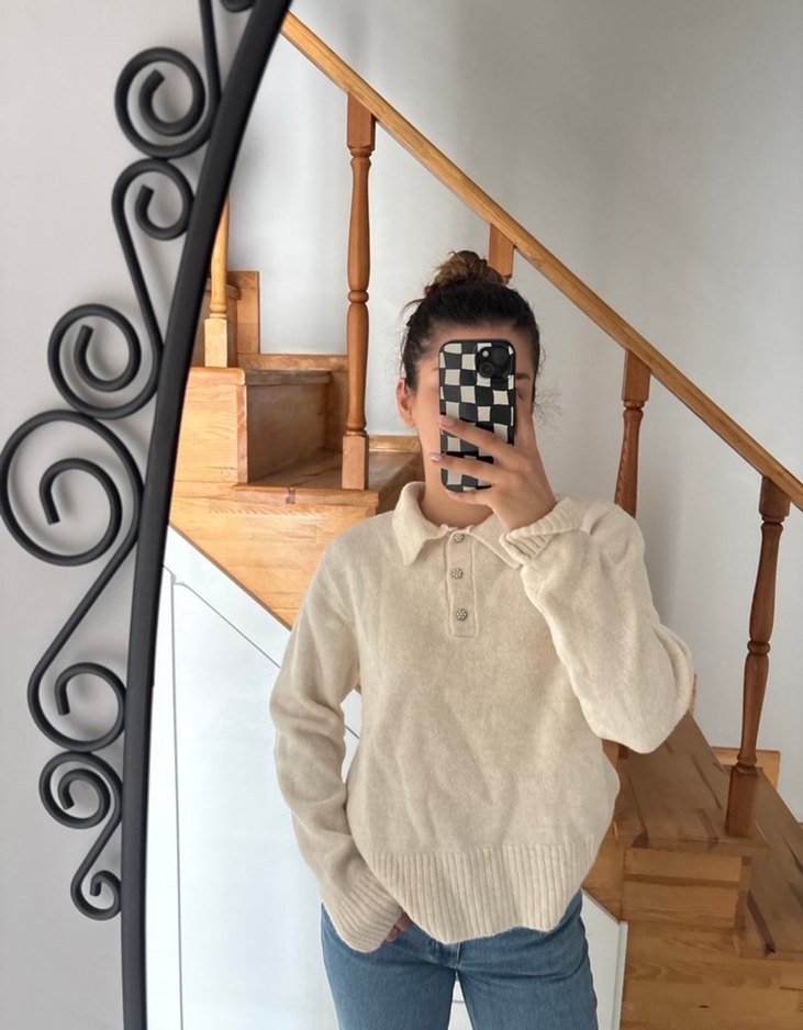 Bej Polo Yaka Rahat Kesim Kadın Kazak
