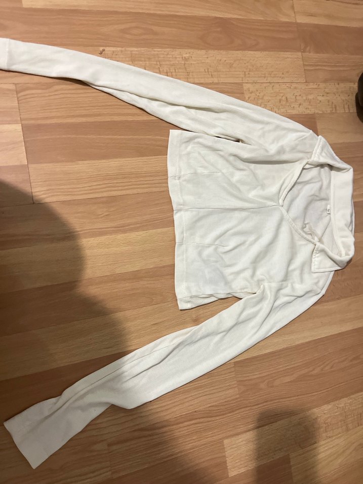 Bej Polo Yakalı Uzun Kollu Kadın Crop Body Bluz