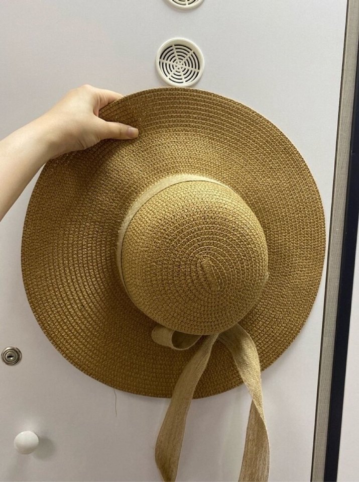 Bej renkte, geniş kenarlı ve püsküllü kadın şapkası, hafif sentetik kumaştan üretilmiştir, bohem tarz için uygundur.