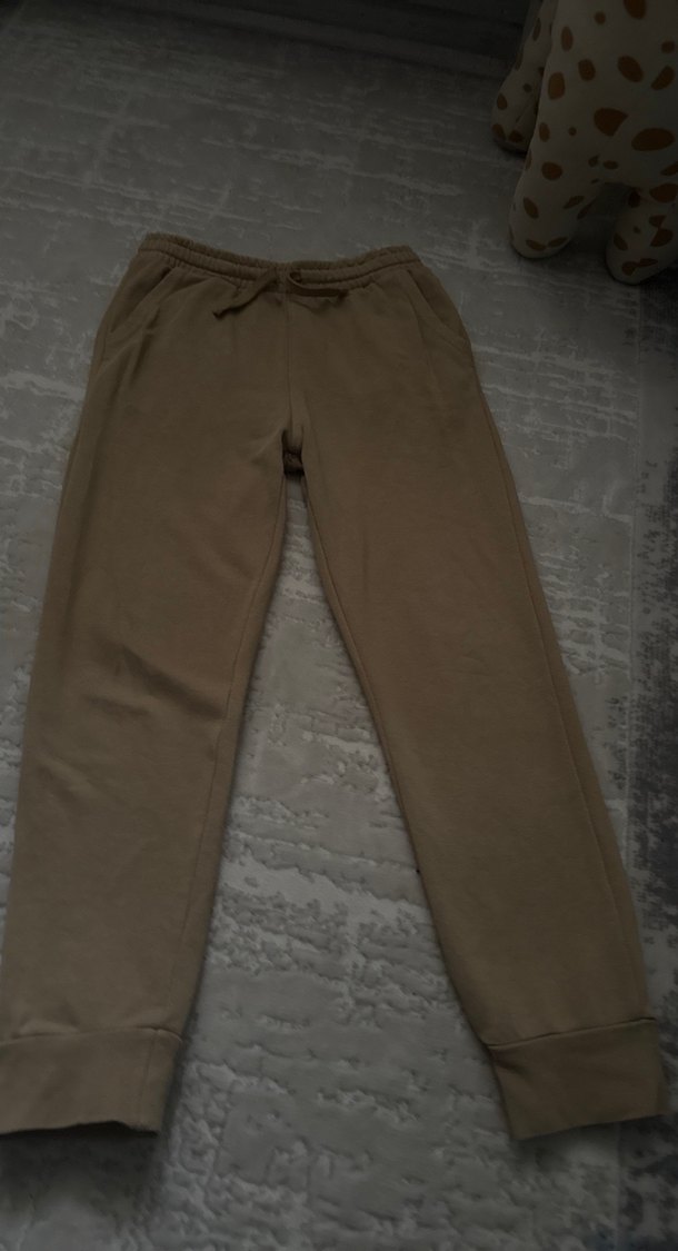 Bej renkli, yumuşak sentetik kumaştan, bol kesim erkek çocuk eşofman altı. Midi boyda, bağcıklı bel ve deseniz sokak tarzı, günlük kullanım için uygun. ♀️