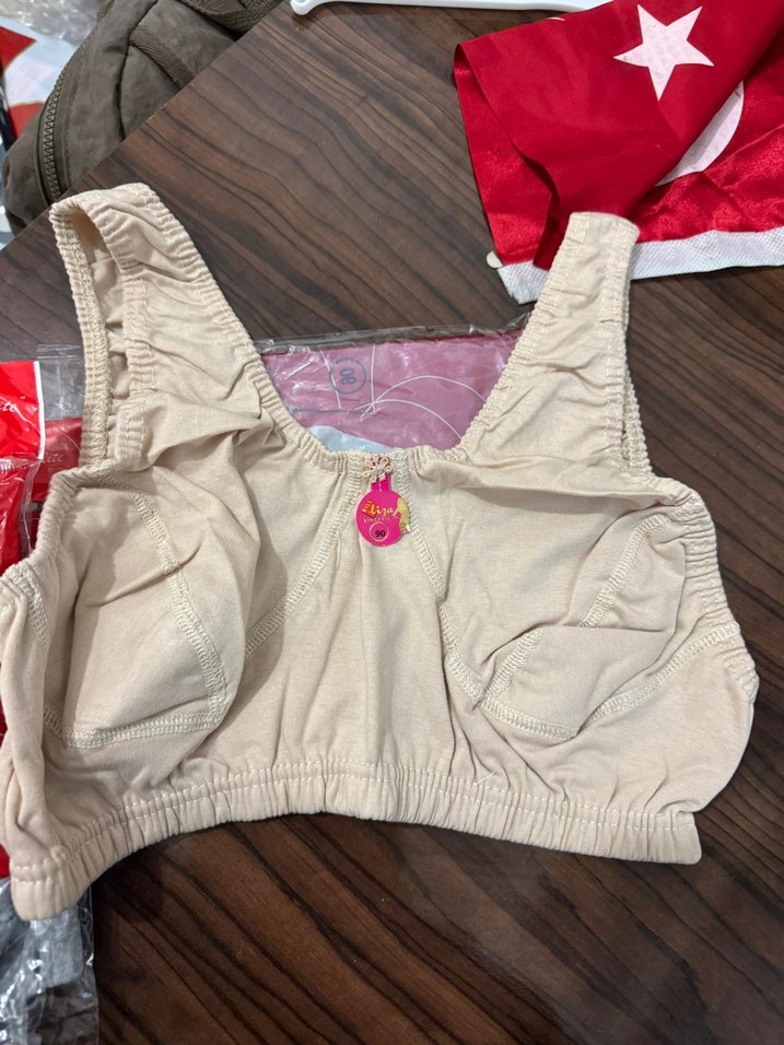 Bej renkte, desen içermeyen, rahat ve yumuşak dokulu sütyen. Normal uzunlukta askıları ile günlük kullanıma uygun.
