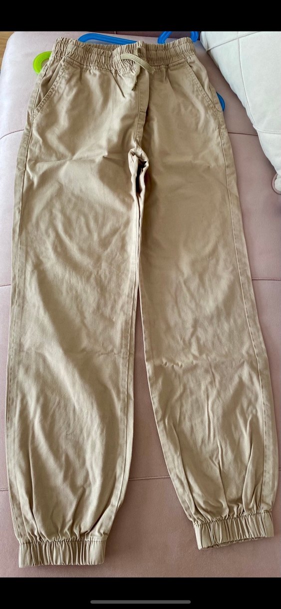 Orijinal mavi mağazasından alındı.Bej renkte, lastikli bel ve paça ucu detaylı, %97 pamuk %3 elastan kumaştan rahat kesim erkek pantolon. Orta kalınlıkta. Günlük sokak stili için uygun. Etiket XS. 12-13 yaş hafif toplu çocuk rahat kullandı