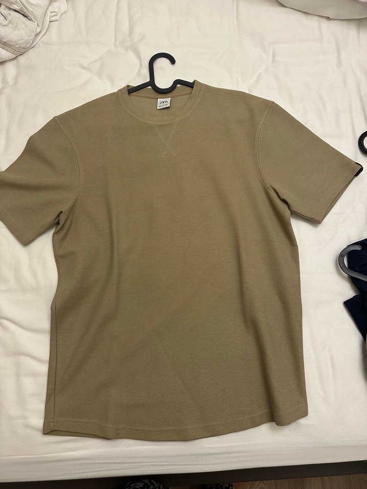 Bej renkte, yuvarlak yakalı ve kısa kollu erkek tişörtü. Rahat kesimi ve yumuşak kumaşıyla günlük kullanıma uygun sade bir model.