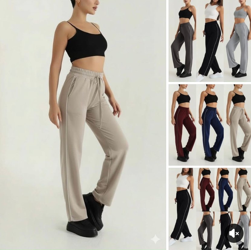 Bej renk, rahat kesim ve yan cepli, yumuşak sentetik kumaştan kadınS eşofman. Günlük kullanım ve sokak tarzı için uygundur.