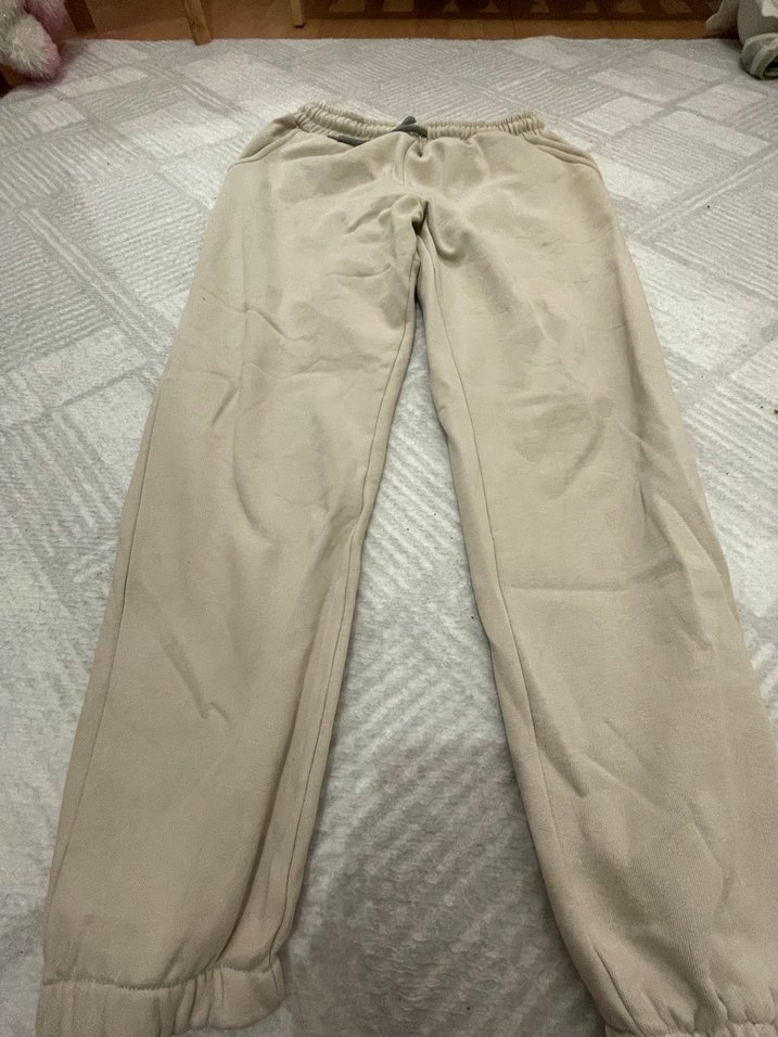 Yumuşak sentetik kumaştan, elastik bel ve bilek detaylı bej renk rahat kesim eşofman altı. Günlük rahat sokak stili için uygundur. ♀️ bir kez tek kullanıldı