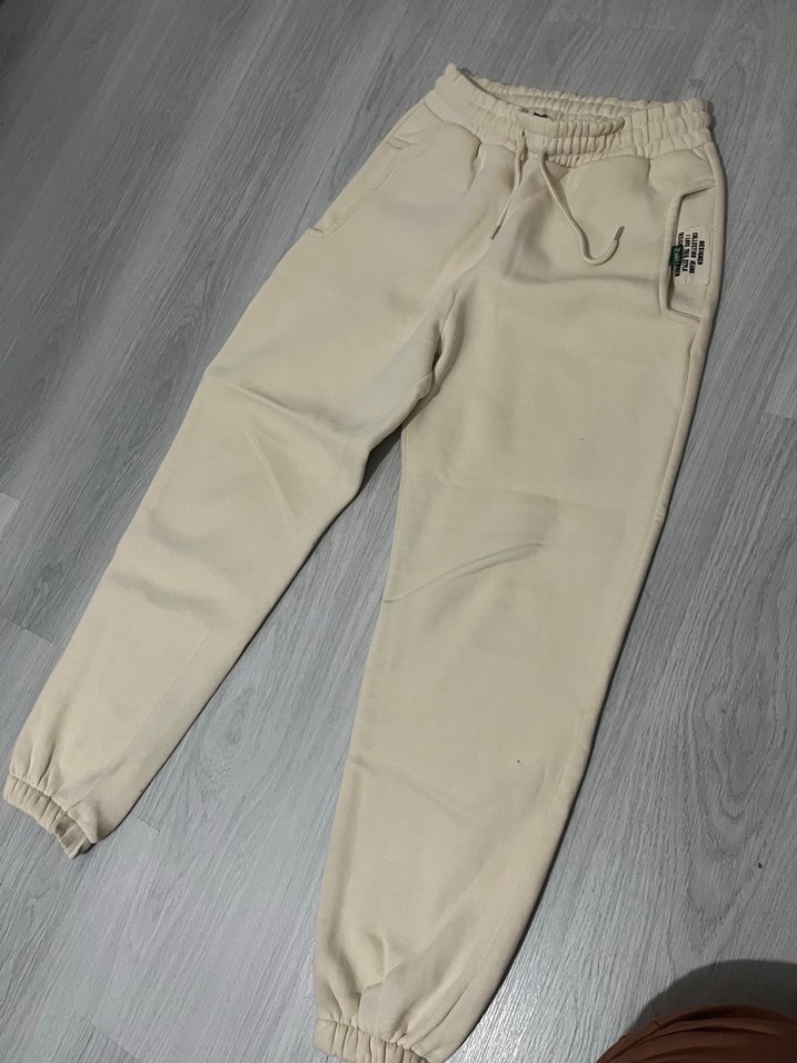 Bej renk, rahat kesim kadın eşofman altı, elastik bel ve paçalar ile yumuşak kumaştan üretilmiştir. Günlük kullanıma uygun sade tasarım. ♀️