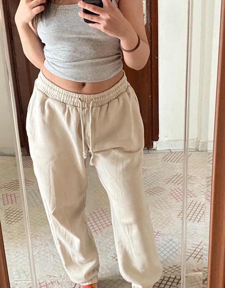 Bej Rahat Kesim Kadın Keten Eşofman Altı