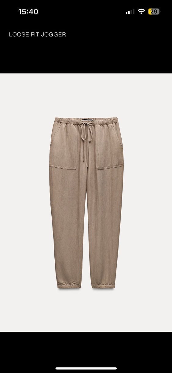 Bej renkli, keten kumaştan, bol kesim ve drapeli kadın pantolonu. Normal midi boyunda, lastikli bel ve ceplidir. Günlük rahat kullanım için uygundur.