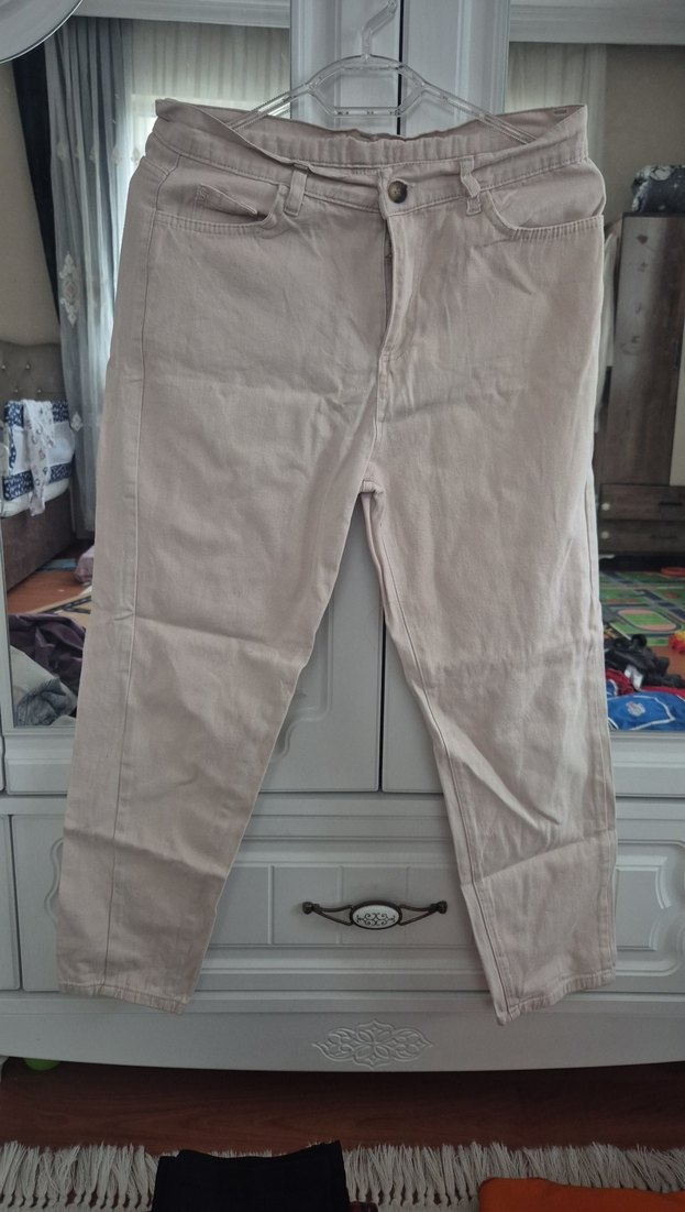 Bej Rahat Kesim Kadın Keten Pantolon