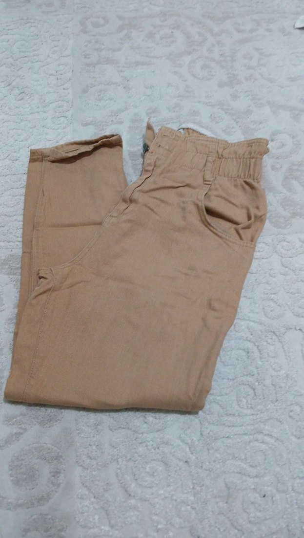 Bej renk, rahat kesim keten kumaştan midi boy kadın pantolon. Günlük kullanıma uygun, zahmetsiz şıklık sunar.