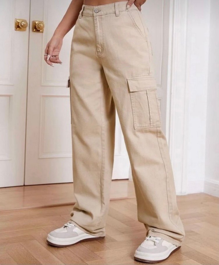 Bej Rahat Kesim Kadın Kot Pantolon
