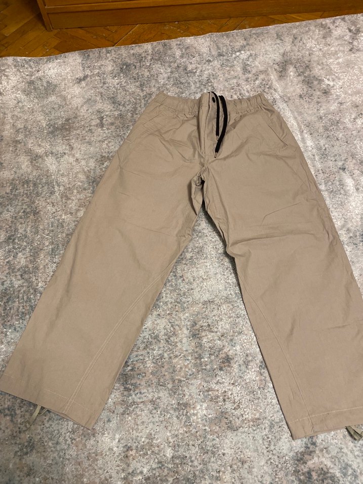 Bej renk, pamuk kumaştan, rahat kesim midi boy kadın pantolon. Günlük kullanıma uygun, sade ve şık bir tasarım.