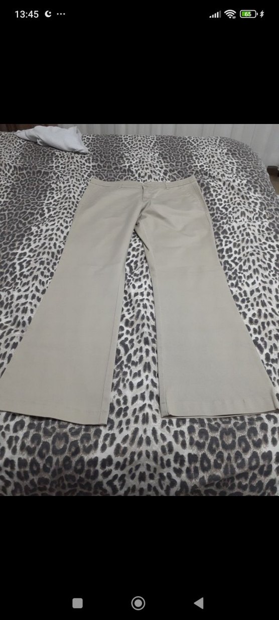 Açık bej renkte İspanyol paça pantolon. Tok duran, kaliteli kumaşı sayesinde şık bir duruş sağlar. Ütü tutar, kaliteyi bilen bilir. Yepyeni, göründüğü gibidir.
