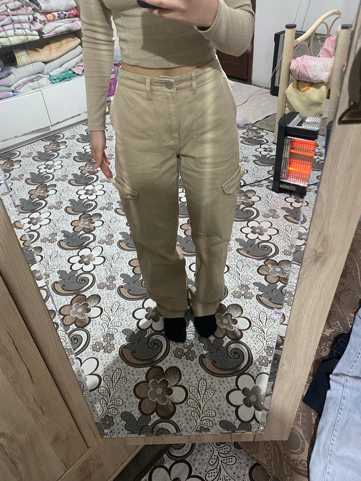 Bej Rahat Kesim Kadın Midi Boy Kot Pantolon